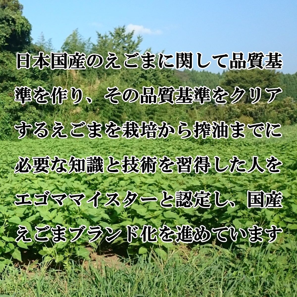 そこで日本国産のえごまに関して品質基準を作り、その品質基準をクリアするえごまを栽培から搾油までに必要な知識と技術を習得した人をエゴママイスターと認定し、国産えごまブランド化を進めています。