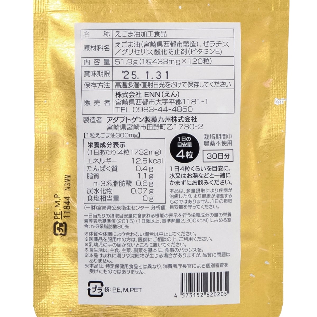 【原材料・産地】えごま油(宮崎県西都市産)、ゼラチン/グリセリン、酸化防止剤(ビタミンE)